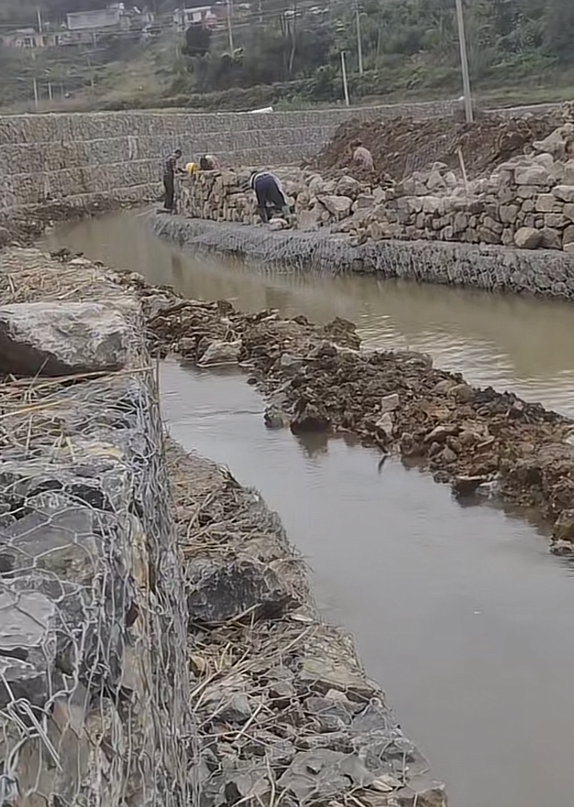 - 2024-7-28 石(shí)籠網高標(biāo)準(zhǔn)河道施工案例(lì),橫縱一條直線